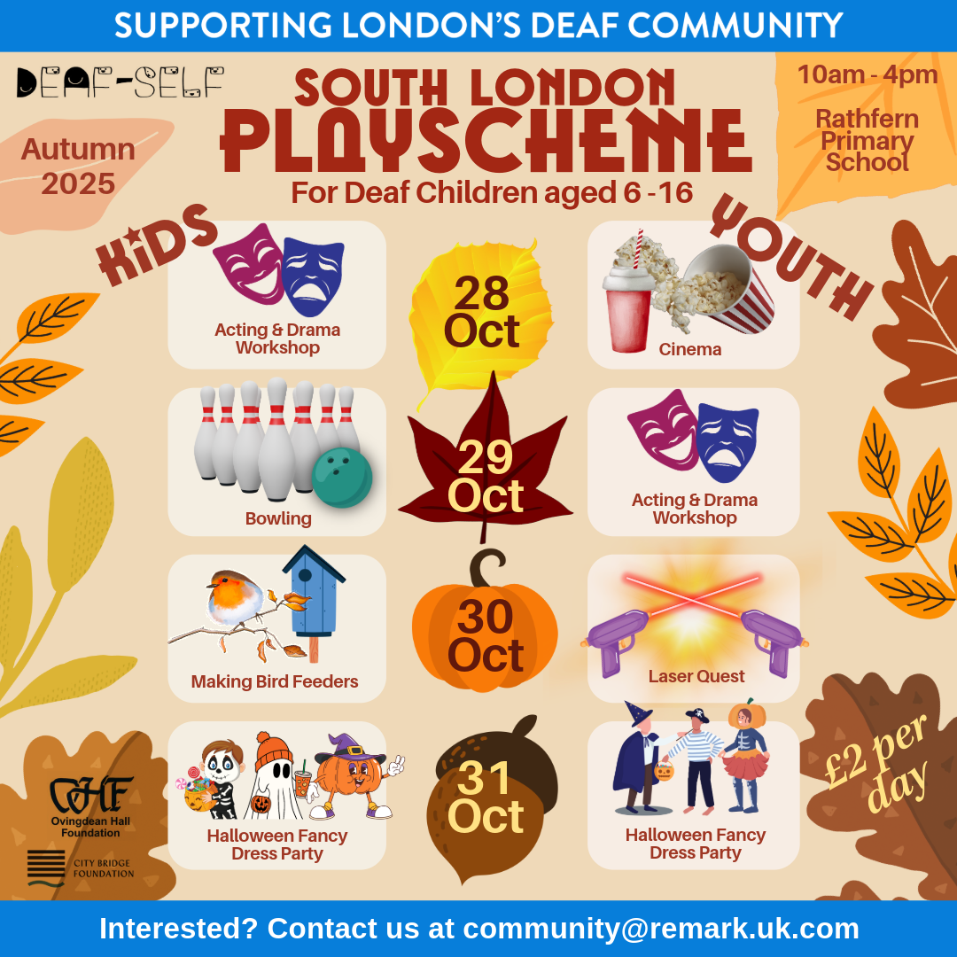 Remark UK are running a playscheme for deaf children aged 6-16.