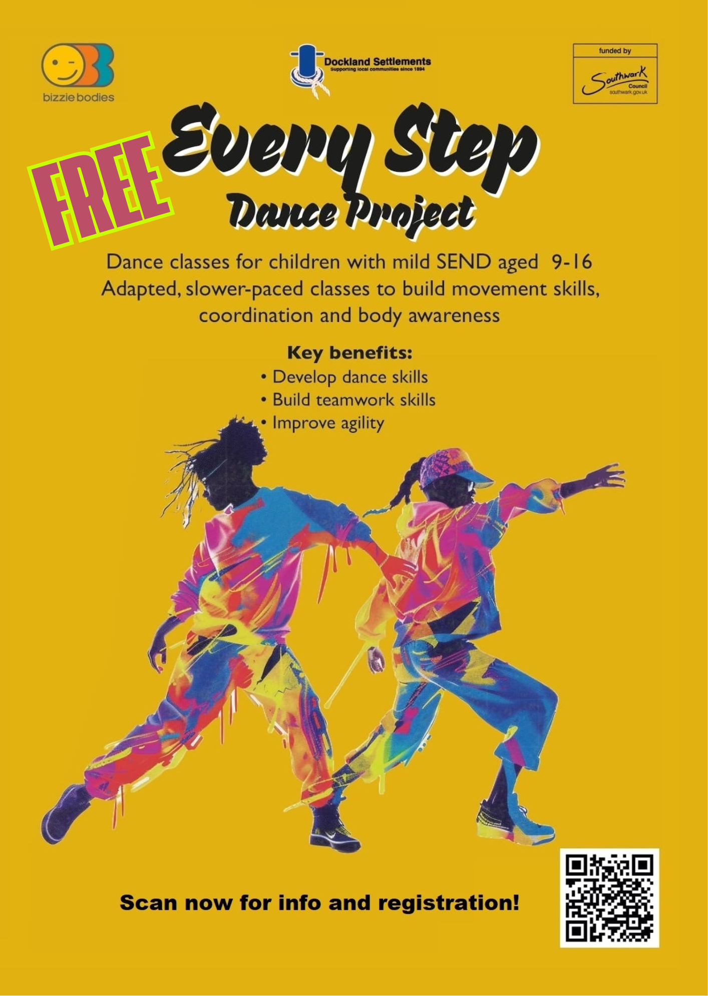 The Dockland Settlements are hosing FREE dance workshops for children and young people ages 9-16 years with mild SEND this Oct half term.